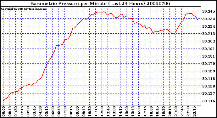 Milwaukee Weather -- 20060706 Barometric Pressure per Minute (Last 24 Hours) -- From curtronics.com by Curt Blank