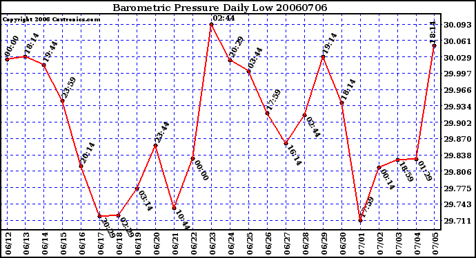 20060706 Barometric Pressure Daily Low