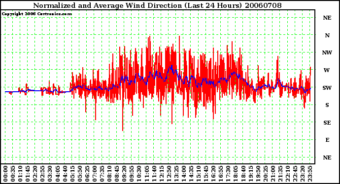 20060708 Normalized and Average Wind Direction (Last 24 Hours)