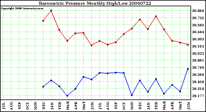 Milwaukee Weather -- 20060722 Barometric Pressure Monthly High/Low -- From curtronics.com by Curt Blank