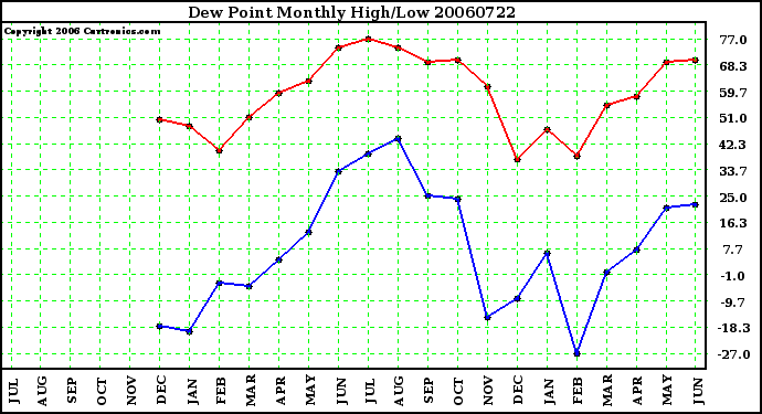 Milwaukee Weather -- 20060722 Dew Point Monthly High/Low -- From curtronics.com by Curt Blank