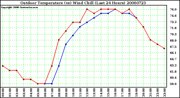 20060723 Outdoor Temperature (vs) Wind Chill (Last 24 Hours)