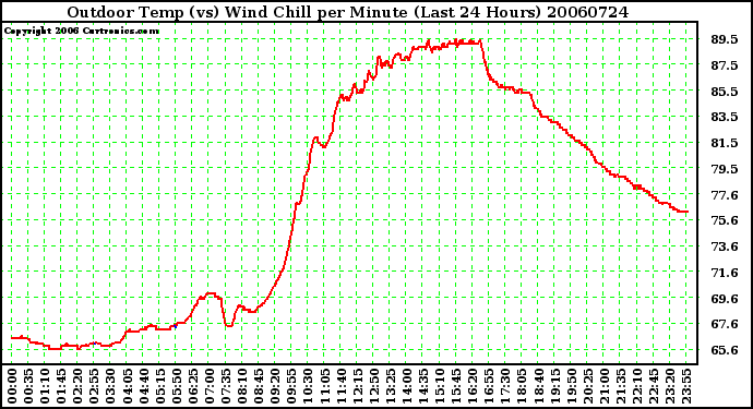 Milwaukee Weather -- 20060724 Outdoor Temp (vs) Wind Chill per Minute (Last 24 Hours) -- From curtronics.com by Curt Blank