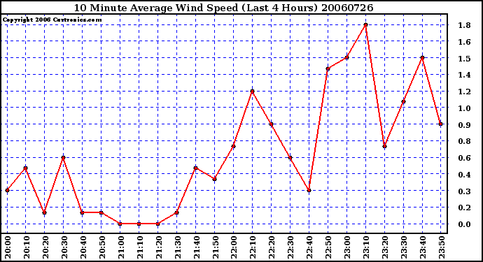 20060726 10 Minute Average Wind Speed (Last 4 Hours)