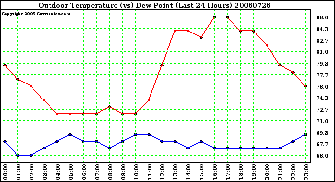 Milwaukee Weather -- 20060726 Outdoor Temperature (vs) Dew Point (Last 24 Hours) -- From curtronics.com by Curt Blank