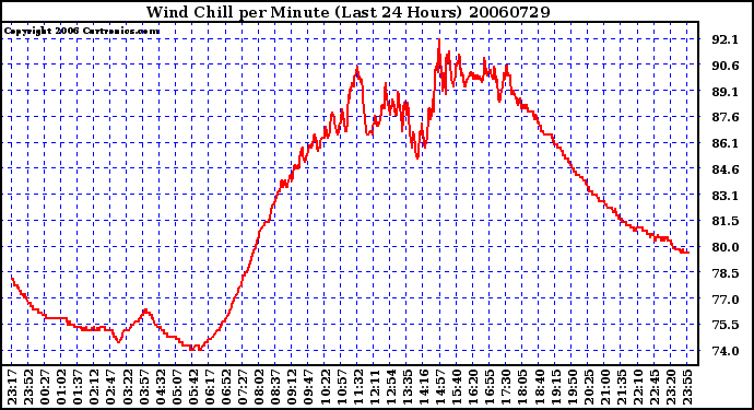 Milwaukee Weather -- 20060729 Wind Chill per Minute (Last 24 Hours) -- From curtronics.com by Curt Blank
