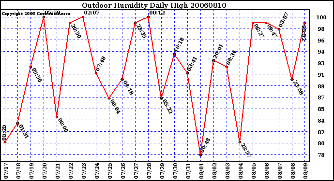 Milwaukee Weather -- 20060810 Outdoor Humidity Daily High -- From curtronics.com by Curt Blank