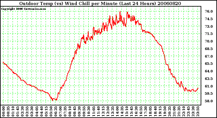 Milwaukee Weather -- 20060820 Outdoor Temp (vs) Wind Chill per Minute (Last 24 Hours) -- From curtronics.com by Curt Blank