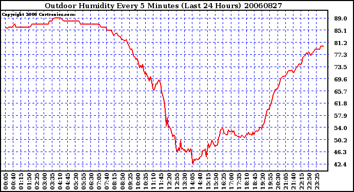 20060827 Outdoor Humidity Every 5 Minutes (Last 24 Hours)