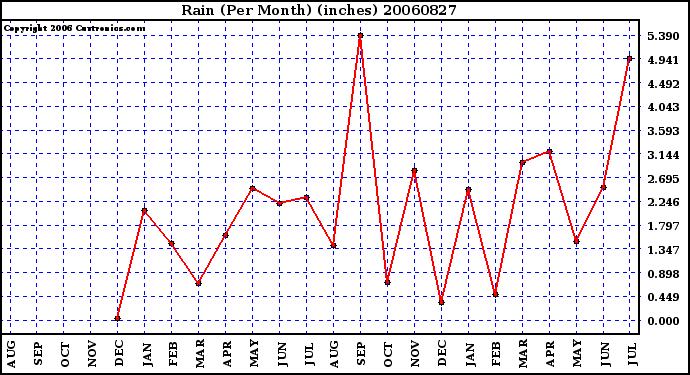 Milwaukee Weather -- 20060827 Rain (Per Month) (inches) -- From curtronics.com by Curt Blank