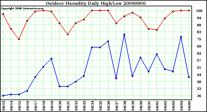 Milwaukee Weather -- 20060906 Outdoor Humidity Daily High/Low -- From curtronics.com by Curt Blank