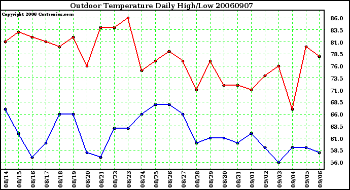 Milwaukee Weather -- 20060907 Outdoor Temperature Daily High/Low -- From curtronics.com by Curt Blank