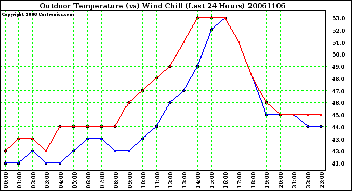 Milwaukee Weather -- 20061106 Outdoor Temperature (vs) Wind Chill (Last 24 Hours) -- From curtronics.com by Curt Blank