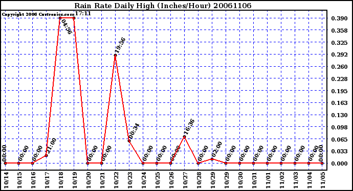 20061106 Rain Rate Daily High (Inches/Hour)