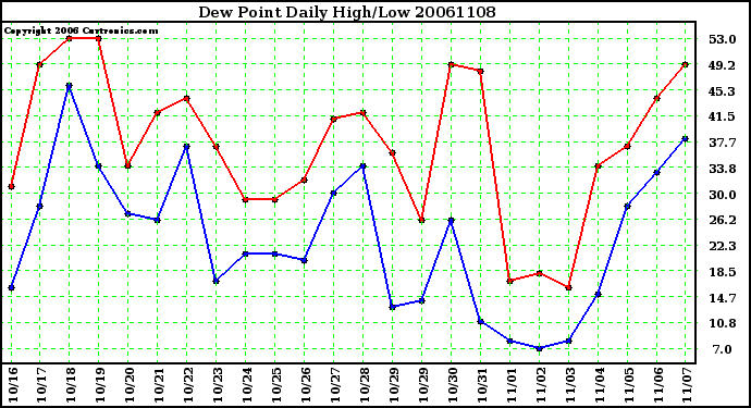Milwaukee Weather -- 20061108 Dew Point Daily High/Low -- From curtronics.com by Curt Blank