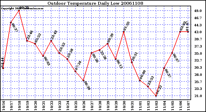 Milwaukee Weather -- 20061108 Outdoor Temperature Daily Low -- From curtronics.com by Curt Blank