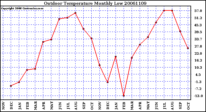 Milwaukee Weather -- 20061109 Outdoor Temperature Monthly Low -- From curtronics.com by Curt Blank
