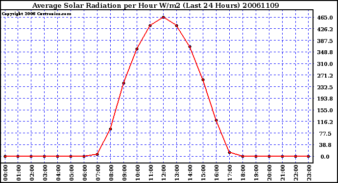 Milwaukee Weather -- 20061109 Average Solar Radiation per Hour W/m2 (Last 24 Hours) -- From curtronics.com by Curt Blank