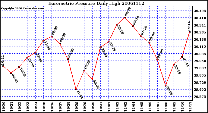 Milwaukee Weather -- 20061112 Barometric Pressure Daily High -- From curtronics.com by Curt Blank