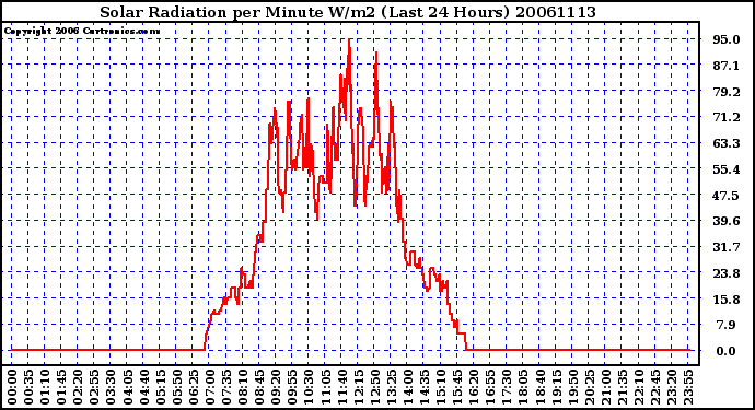 Milwaukee Weather -- 20061113 Solar Radiation per Minute W/m2 (Last 24 Hours) -- From curtronics.com by Curt Blank