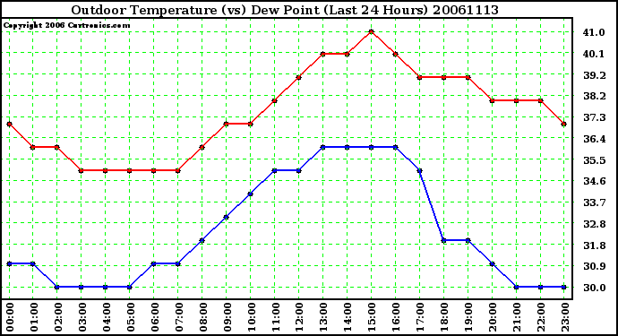 Milwaukee Weather -- 20061113 Outdoor Temperature (vs) Dew Point (Last 24 Hours) -- From curtronics.com by Curt Blank