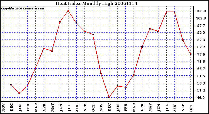 Milwaukee Weather -- 20061114 Heat Index Monthly High -- From curtronics.com by Curt Blank