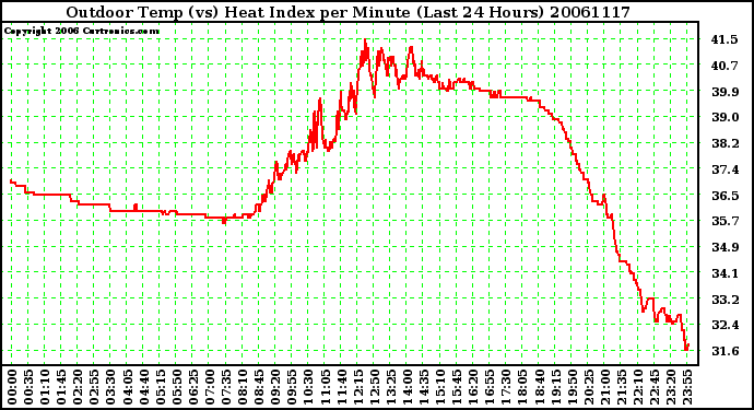 Milwaukee Weather -- 20061117 Outdoor Temp (vs) Heat Index per Minute (Last 24 Hours) -- From curtronics.com by Curt Blank