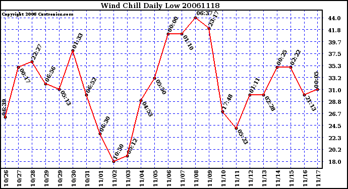 Milwaukee Weather -- 20061118 Wind Chill Daily Low -- From curtronics.com by Curt Blank