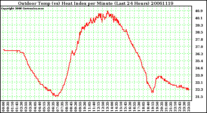Milwaukee Weather -- 20061119 Outdoor Temp (vs) Heat Index per Minute (Last 24 Hours) -- From curtronics.com by Curt Blank
