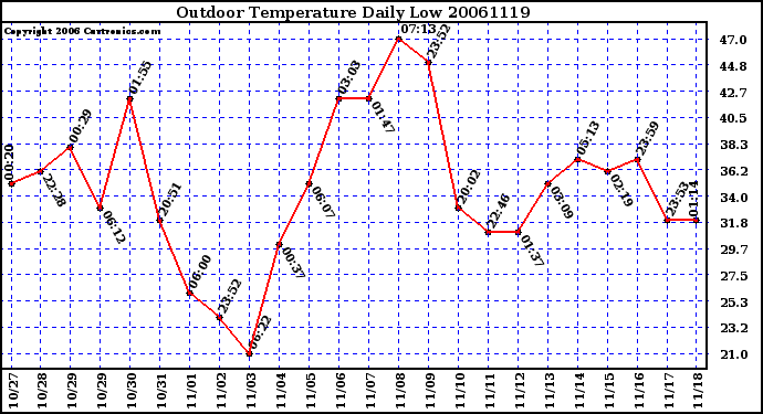 Milwaukee Weather -- 20061119 Outdoor Temperature Daily Low -- From curtronics.com by Curt Blank