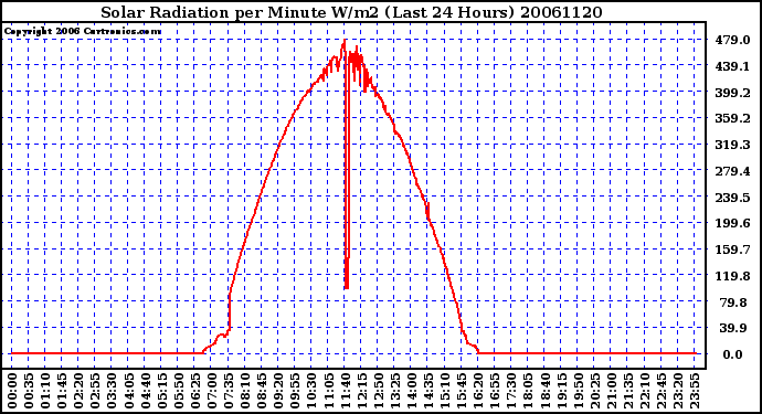 Milwaukee Weather -- 20061120 Solar Radiation per Minute W/m2 (Last 24 Hours) -- From curtronics.com by Curt Blank