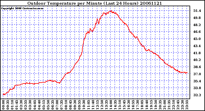 Milwaukee Weather -- 20061121 Outdoor Temperature per Minute (Last 24 Hours) -- From curtronics.com by Curt Blank