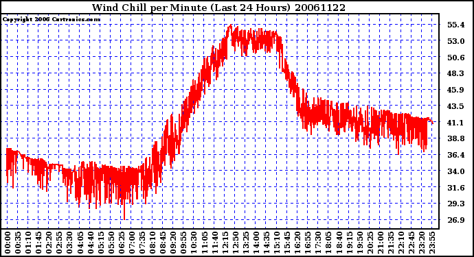 Milwaukee Weather -- 20061122 Wind Chill per Minute (Last 24 Hours) -- From curtronics.com by Curt Blank
