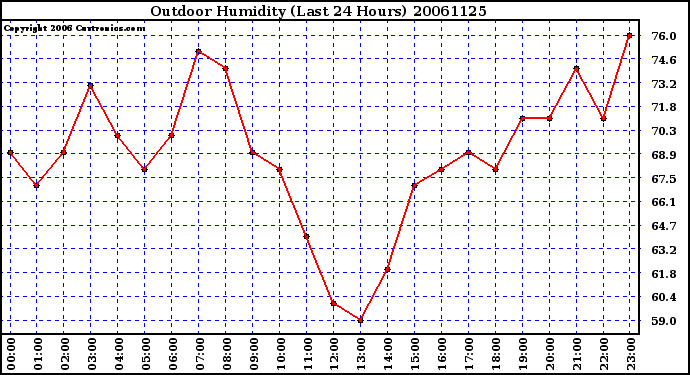Milwaukee Weather -- 20061125 Outdoor Humidity (Last 24 Hours) -- From curtronics.com by Curt Blank