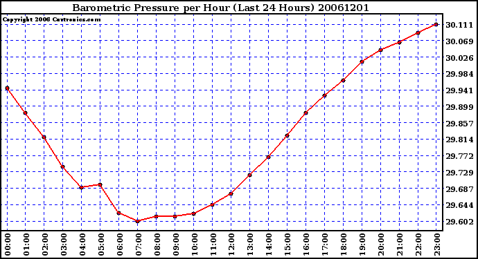 Milwaukee Weather -- 20061201 Barometric Pressure per Hour (Last 24 Hours) -- From curtronics.com by Curt Blank