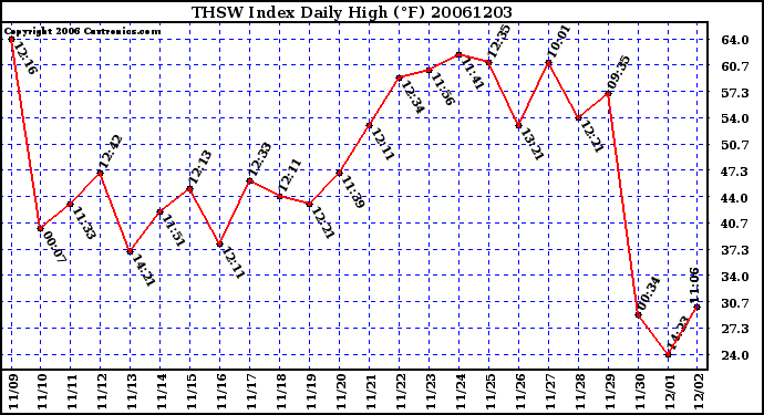 Milwaukee Weather -- 20061203 THSW Index Daily High (°F) -- From curtronics.com by Curt Blank