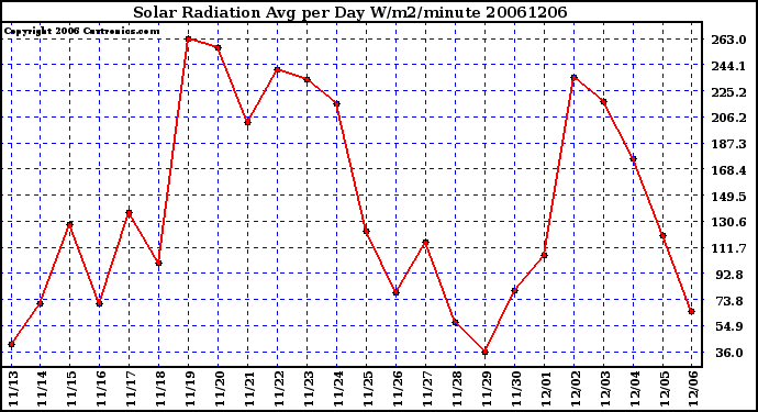 Milwaukee Weather -- 20061206 Solar Radiation Avg per Day W/m2/minute -- From curtronics.com by Curt Blank