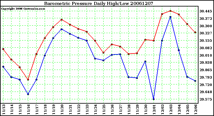 Milwaukee Weather -- 20061207 Barometric Pressure Daily High/Low -- From curtronics.com by Curt Blank