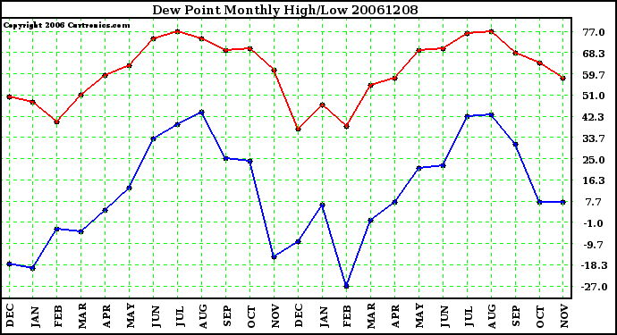 Milwaukee Weather -- 20061208 Dew Point Monthly High/Low -- From curtronics.com by Curt Blank