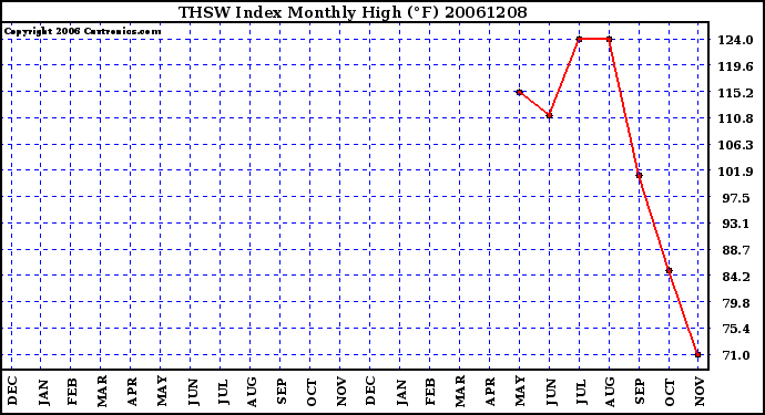 Milwaukee Weather -- 20061208 THSW Index Monthly High (°F) -- From curtronics.com by Curt Blank