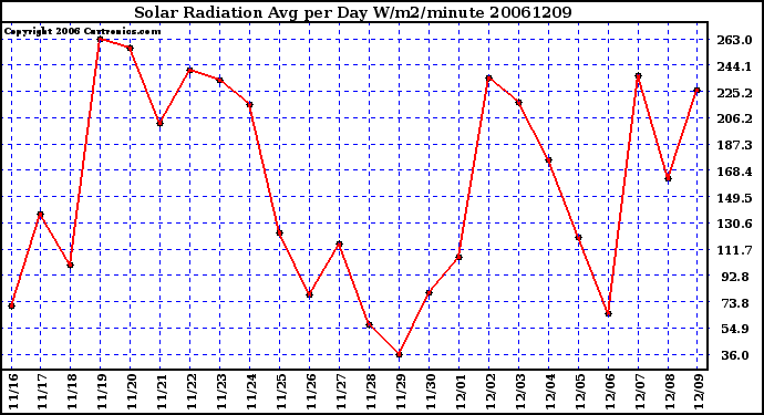 Milwaukee Weather -- 20061209 Solar Radiation Avg per Day W/m2/minute -- From curtronics.com by Curt Blank
