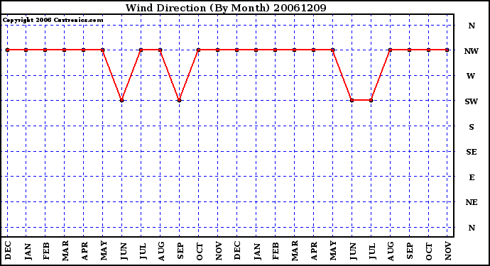 Milwaukee Weather -- 20061209 Wind Direction (By Month) -- From curtronics.com by Curt Blank