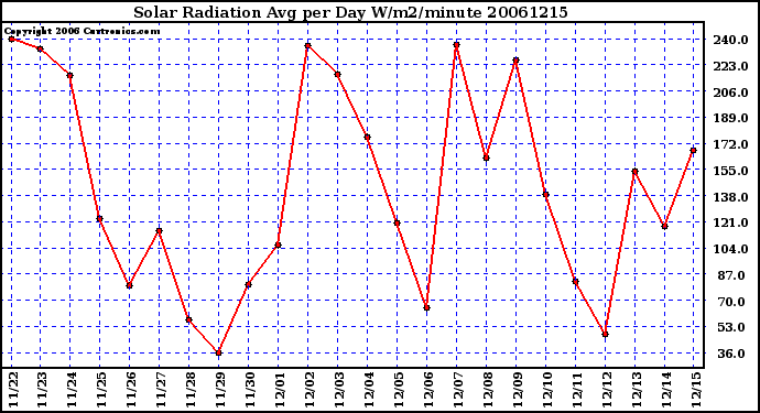 Milwaukee Weather -- 20061215 Solar Radiation Avg per Day W/m2/minute -- From curtronics.com by Curt Blank