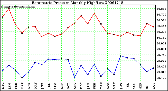 Milwaukee Weather -- 20061218 Barometric Pressure Monthly High/Low -- From curtronics.com by Curt Blank