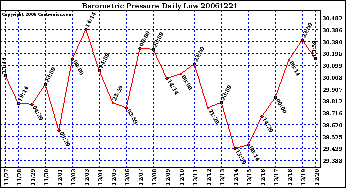 Milwaukee Weather -- 20061221 Barometric Pressure Daily Low -- From curtronics.com by Curt Blank