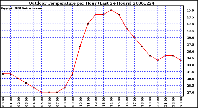 Milwaukee Weather -- 20061224 Outdoor Temperature per Hour (Last 24 Hours) -- From curtronics.com by Curt Blank