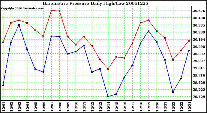 Milwaukee Weather -- 20061225 Barometric Pressure Daily High/Low -- From curtronics.com by Curt Blank