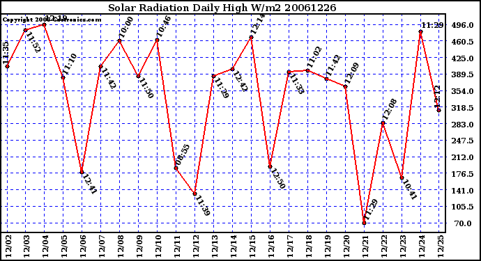 Milwaukee Weather -- 20061226 Solar Radiation Daily High W/m2 -- From curtronics.com by Curt Blank