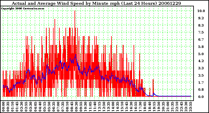 20061229 Actual and Average Wind Speed by Minute mph (Last 24 Hours)