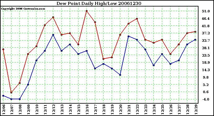 Milwaukee Weather -- 20061230 Dew Point Daily High/Low -- From curtronics.com by Curt Blank